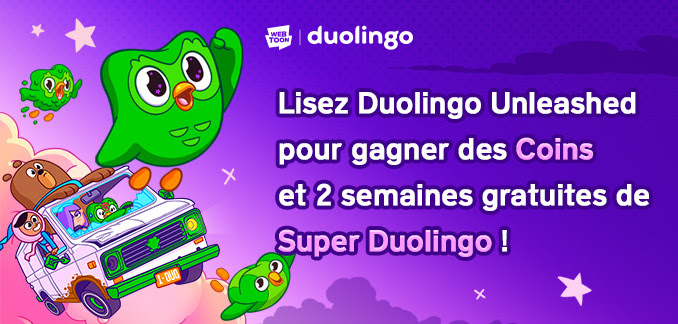 À l’occasion du lancement de Duolingo Unleashed, les lecteurs français pourront profiter d’avantages exclusifs : un code d’essai gratuit (pour 2 semaines de contenus) Super Duolingo, ainsi que 3 Coins offerts à tous les utilisateurs ayant lu les cinq épisodes de la série le jour du lancement. Une initiative qui illustre parfaitement la volonté commune de Duolingo et WEBTOON de rendre l’apprentissage et la lecture plus accessibles et divertissants.